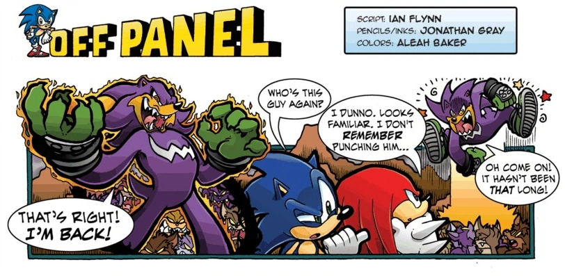 - ↑ Ian Flynn (1 March 2013). Endangered Species Afterthought: What DIDN'T Change?. BumbleKing Comics. Archived from the original on 2 November 2015.