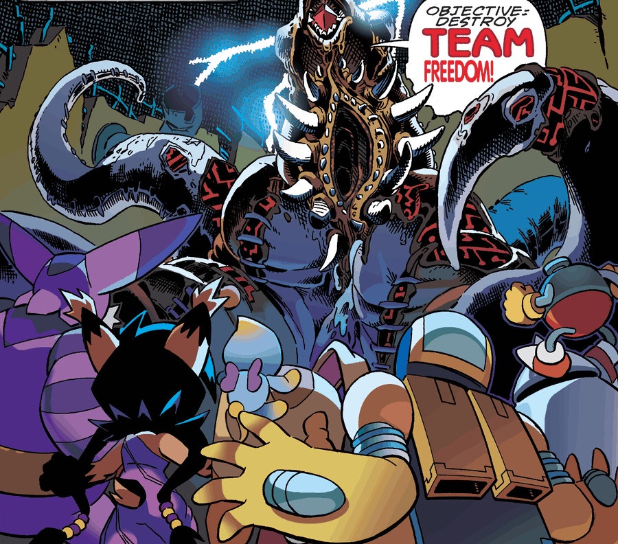 - “At All Costs” Part One: On the eve of the history-making “worlds collide” crossover event – Sonic’s Team Fighters have reached the frigid north! The plan: finally rescue Mecha Sally. But will Silver’s arrival help or hinder their efforts? Meanwhile, “Operation: Deadly Cuddles” goes into full effect, menacing Team Freedom! It’s the last stop of the road to the Sonic/Mega Man crossover event – with an explosive ending that will rock Sonic’s world!