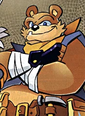 Avery is a brown mobian bear that wears a yellow bandana around his neck. He wears a blue vest, black gloves, and a brown belt that includes various amount of tools. He is very loyal to the Sand-Blasters leader, Jack Rabbit.