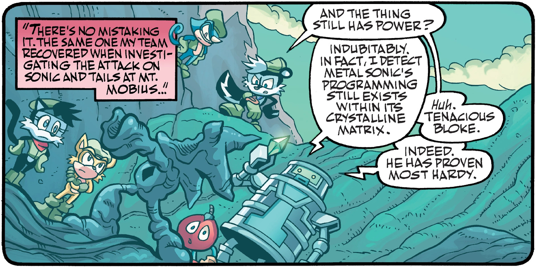 The Royal Secret Service discover the remains of Metal Sonic v2.5, from Sonic Universe #43.