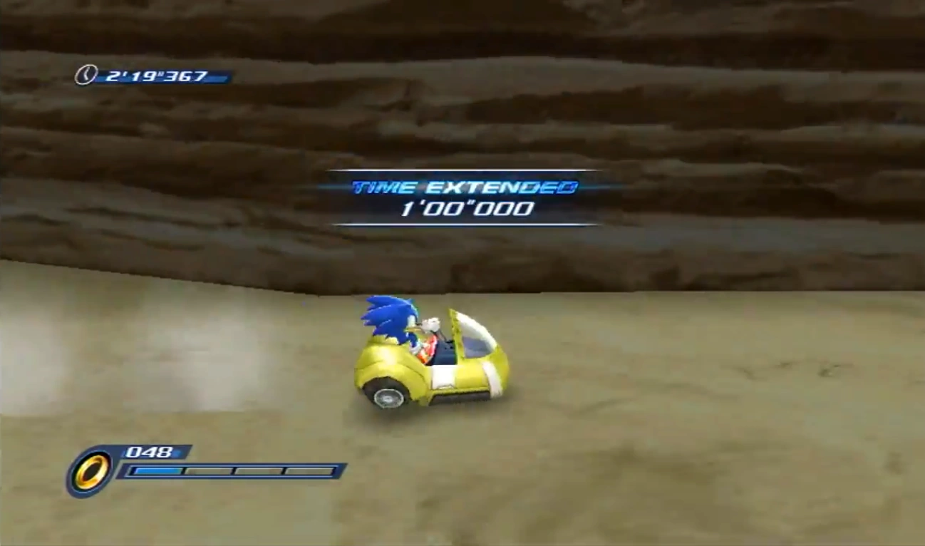 The Buggy [ 1] is a small yellow vehicle that Sonic the Hedgehog uses in some of the optional Day Stages of Arid Sands in the Wii /PlayStation 2 version of Sonic Unleashed .