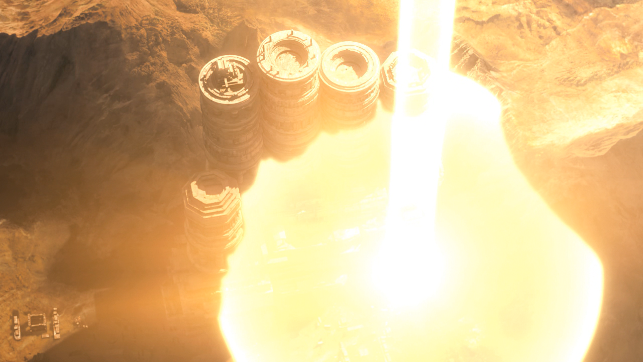 A Chaos Emerald teleporting an entire Gaia Temple, from the Xbox 360/PlayStation 3 version of Sonic Unleashed.
