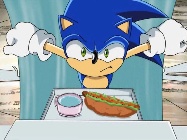 Sonic with two chili dogs, from Sonic and the Black Knight .