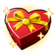 The Choc Lock's icon takes the form of a red heart box and is wrapped by a yellow bow. White and orange-outline sprinkles surround the box. In gameplay, the Choc Lock spawns red heart-shape boxes down the track.