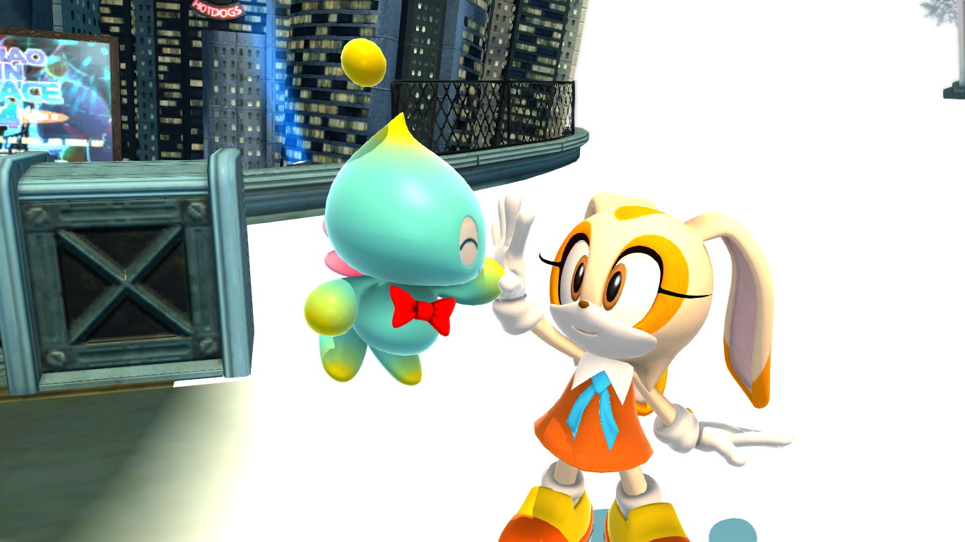 In Sonic Generations, Cream and Cheese were among the many characters that attended Sonic's birthday party. If Classic Sonic rescues them, Cream mistakes him for Modern and asks if he got a haircut. Classic Sonic would then look at his spikes and stroke them. If Modern Sonic rescues them, Cream tells him that she was scared from the darkness, but tried to be brave.
