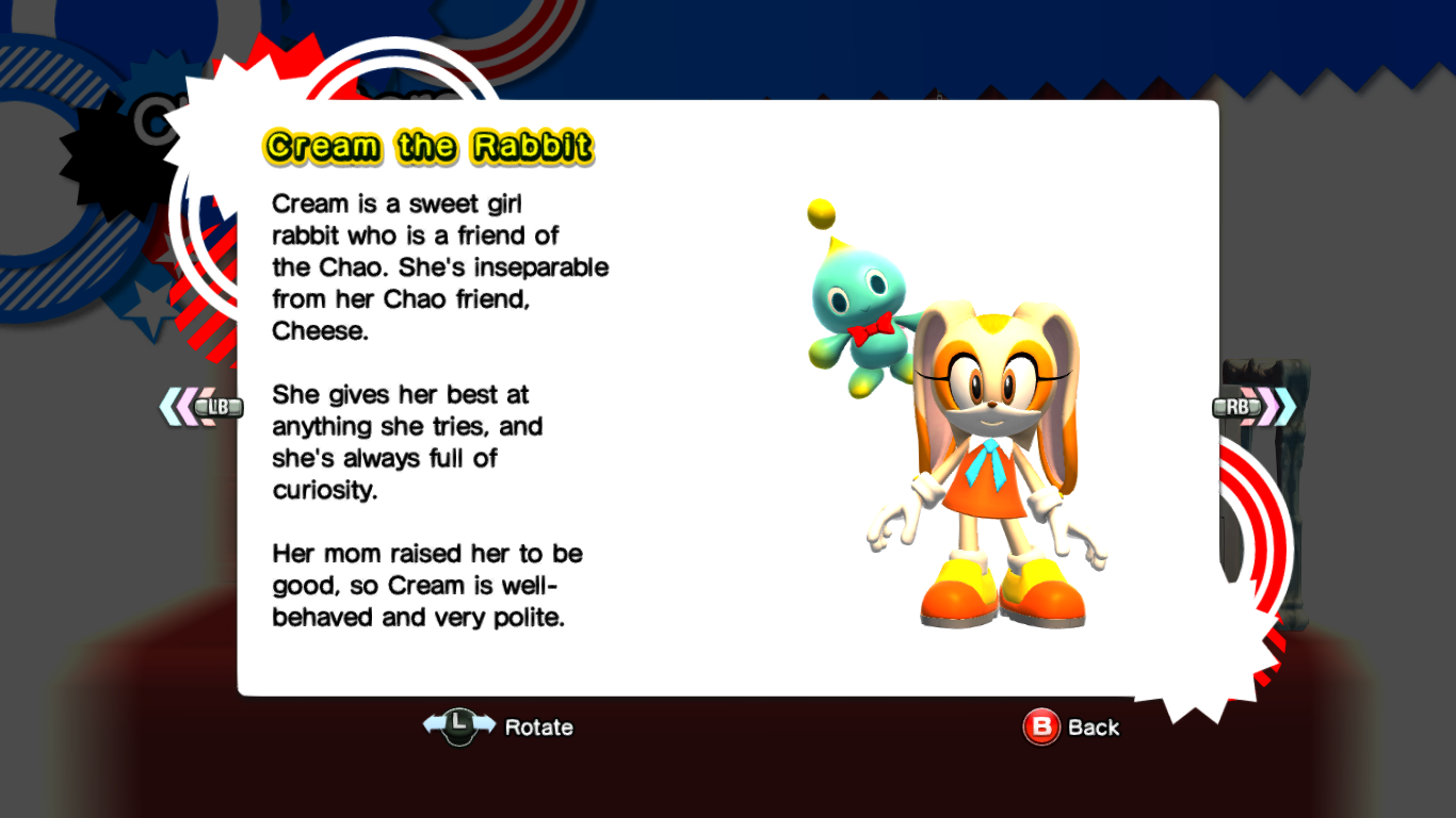 Cream's profile in Sonic Generations.