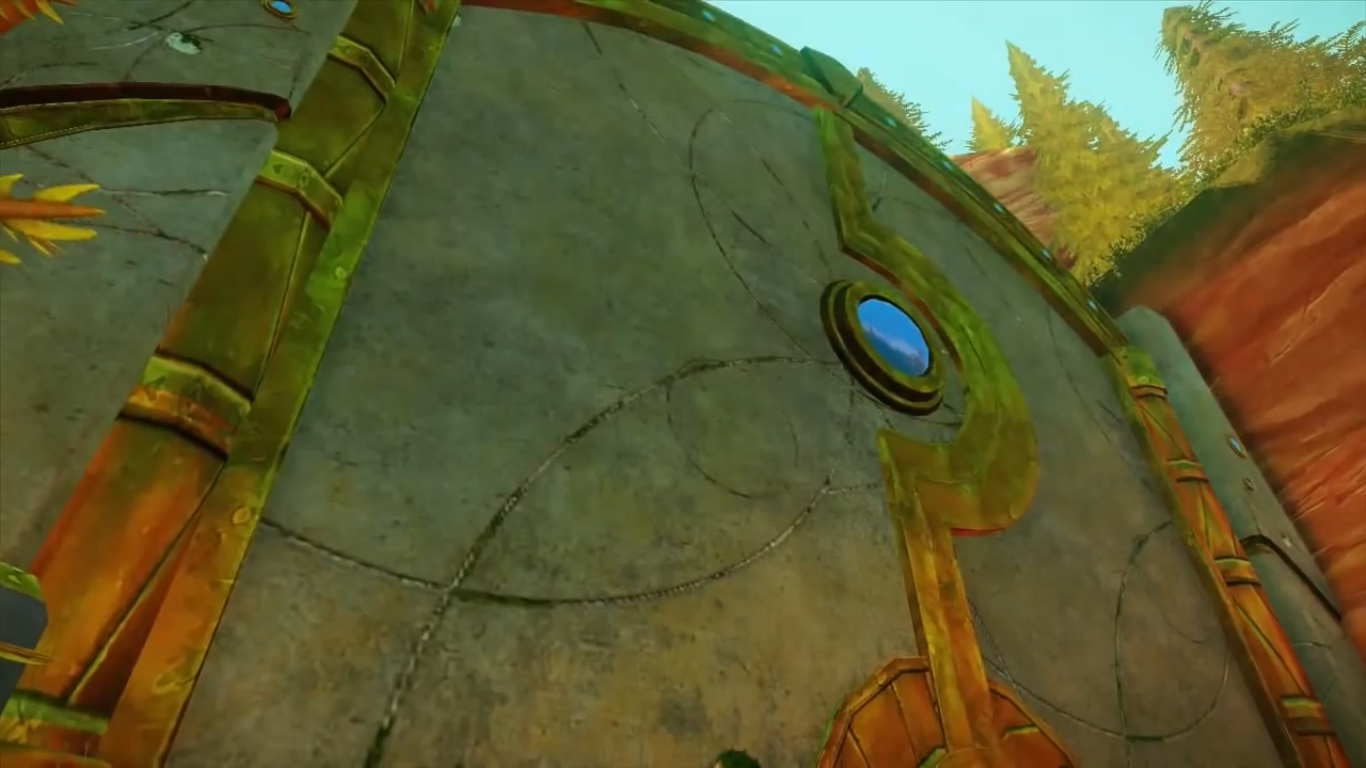 The Crystal Locks are dome-shaped stone figure with golden outlines. Up front they have a cylinder with a glowing engraving shaped like one of the Chaos Crystals (the Sky Crystal is not included). These locks are connected to mechanisms that block paths. Placing the matching Chaos Crystal on top of the engraving on the Crystal Lock will open its path while the Crystal Lock slides into the ground.