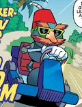 Having gotten a job at the Fuzzy Puppy Warehouse, the Warehouse Worker would sell the warehouse's entire surplus of Fuzzy Puppy figurines to Orbot at a discount prize.[5] Back at the DangerCo Deadly Equipment Warehouse, the Warehouse Worker would again demand to see Dr. Eggman's credentials when the scientist came there to shop. Because the Warehouse Worker was no longer intimidated by his threats (since he got divorced), Eggman had to comply. However, the Warehouse Worker denied Eggman his products when his transcript showed that he had no Ph.D. (since he's 2 credits short of the graduation requirements), prompting Eggman to leave, frustrated.[2]