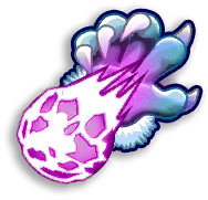 The Dark Blast's icon takes the form of a purple energy ball fired from the palm of the Werehog . In gameplay, this power-up becomes a purple energy ball that the Werehog fires from his hand with a slashing motion. In addition, it leaves a purple energy trail that has three thin and bright lines running along it.