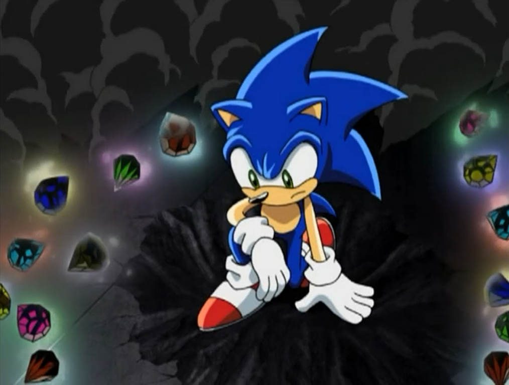Sonic surrounded by fake Chaos Emeralds