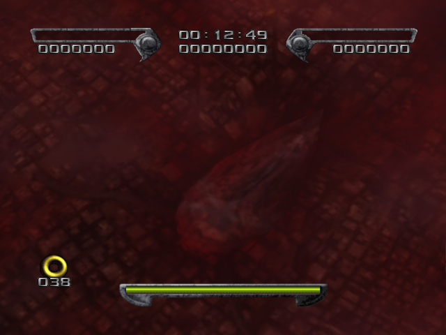The first type of attack that Devil Doom uses is floating in front of Shadow with a ring of debris. He may throw it at Shadow. If Shadow gets hit, he will be momentarily sent backwards. Shadow should use rapid Chaos Spears to destroy the debris in order to avoid the delay. There are ring balloons in the debris. Rings are vital because if Shadow runs out of them, he'll fall and lose a life. Therefore, he must try shooting at the Ring balloons.