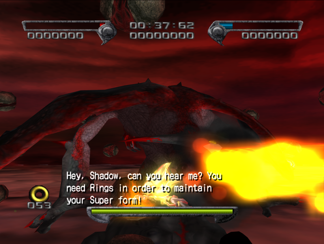 - If Shadow loses all his rings during the boss fight, he will fall out of the sky and say "Maria!", instead of "Damn, not here!"