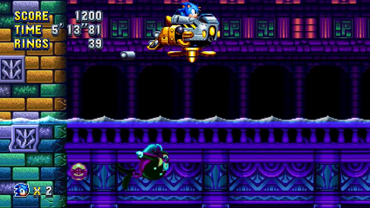 After four hits, Eggman's scuba suit will explode and he falls off the screen in defeat. The player can then hover to the right to find the Goal Plate and finish the Act.