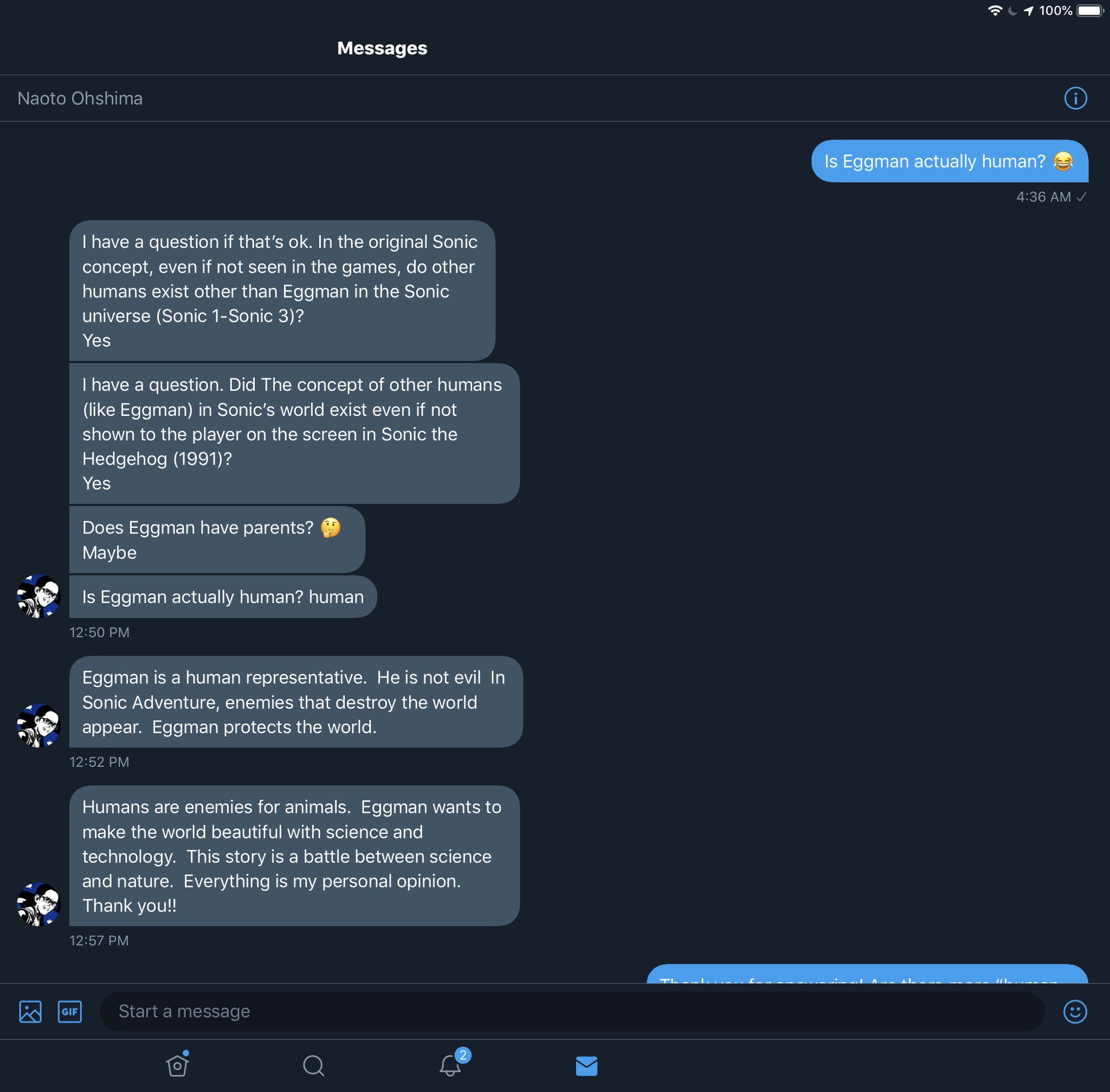 - ↑ Sega of America (February 2004). Yuki Naka on Sonic's Past, Present, and Future part 2. Sega. Archived from the original on 24 January 2004. "Sega.com: Did Sonic have a hand in changing Dr. Robotnik's name to Dr. Eggman for the United States games? If so, was he trying to make fun of his nemesis? / Yuji Naka: To tell the truth, his name has not changed. Robotnik is his real name and Eggman is a common name taken after his shape. Possibly, it may have been Sonic, who uttered this alias for the first time! I feel, though, Sonic uses this name affectionately, rather than trying to make fun of the doctor."