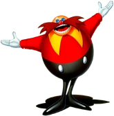 Despite his intelligence, Eggman can be very immature,[40] which is what makes him so eager to conquer the world.[41][42] This childish behavior makes him believe that taking over the world can be easy.[3] He is also often prone to throw emotional and childish outbursts when Sonic manages to wreck his plans.[14] His immaturity is usually best displayed whenever he gets insulted or when his plans begin to break apart when victory was previously assured. Despite this though, Eggman is extremely short-tempered and aggressive, and can also be very serious and threatening. However, he shows the latter side very rarely, usually when extremely aggravated or during very serious situations. Under this pressure, he often attempts to intimidate his opponents by death threatening them. Notable instances of this include the Chaos incident, where he menaced Tails while barely even raising his voice after the fox cub had foiled his attempt to destroy Station Square; and the Lost Hex incident, where he, after being taunted by the Deadly Six about the impending destruction of the world, threatened them in an even-handed manner to destroy everything they desired before smashing the ice-block communication set they were using and retaining this tone when telling Orbot his hands were okay from smashing the ice blocks so long as he could strangle a Zeti with them.[43] On a similar note, he was also shown to possess a rather bleak and cruel sense of humor, even joyfully narrating the dangers his interstellar amusement park possessed during the Wisp incident. Similarly, in his propaganda video "Come Join the Eggman Empire" during the War to Take Back the Planet, he happily said that living in an area filled with pollution is a lot better than in one with clean air, especially after a Robotomy Treatment that saps its citizens of their ability to eat, sleep, and think ever again; which he claimed to be the "good life."[44]