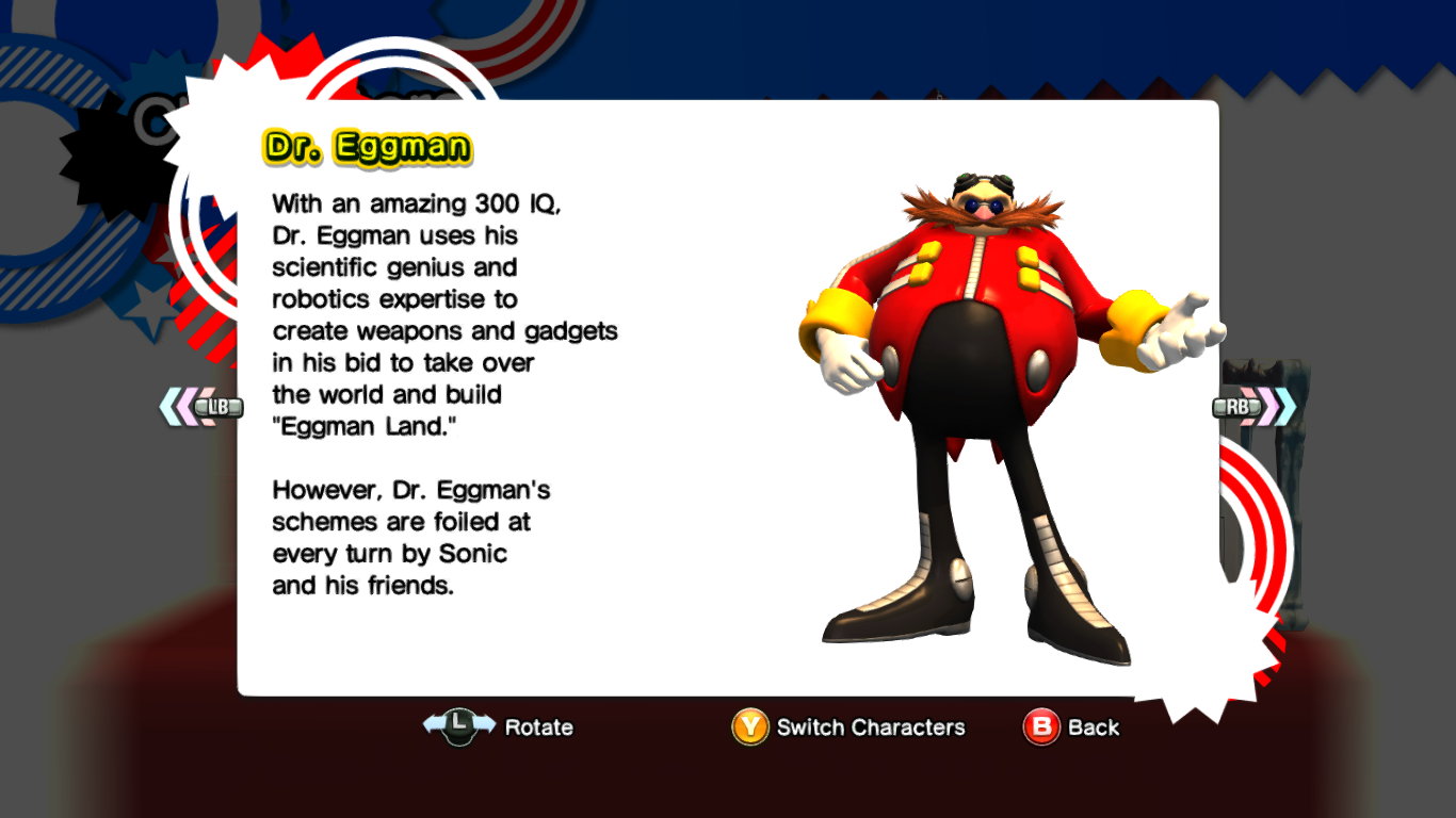 Dr. Eggman's profile, from the Xbox 360 version of Sonic Generations.