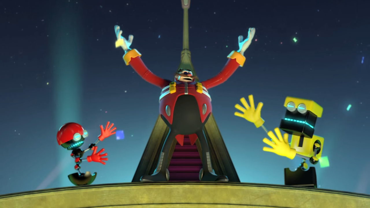 Dr. Eggman with his assistants robots, Orbot and Cubot, from Sonic Colors.