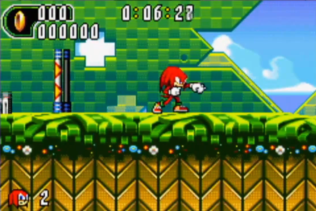 The Double Punch first appeared in Sonic Advance 2 where Knuckles can only perform it when in movement. To perform the Double Punch in gameplay, the player has to press while Knuckles is running and he will use it in front of him.