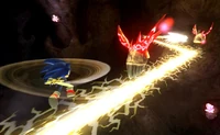 In the boss fight, when playing as Sonic, one of the quotes he says makes a reference to the Finalhazard from Sonic Adventure 2 .