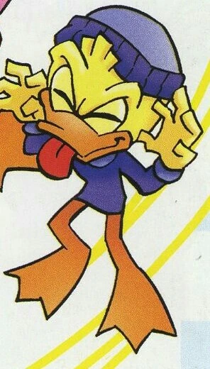 Duane Quack[1] is a character that appears in the Sonic the Hedgehog comic series and its spin-offs published by Archie Comics. He is a mobian duck, the brother of Hubert and Louise Quack and the son of Elizabeth Quack and Horatio Quack.