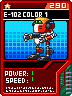 E-102 Color 1 is a color data skill. When equipped, it changes the color of Emerl's horn, and other parts of his body colored the same, to yellow.