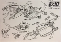 Soon after his latest failure Dr. Eggman deployed E-90 into the stratosphere and have it steal dozens of the world's satellites. This move allowed Dr. Eggman to remove spy satellites watching him, gain the ability to broadcast his own television show to the masses and give himself a new supply of technology to convert into robot parts. However, Sonic the Hedgehog and Tails soon after leaped into action in the Tornado 2 and headed for the stratosphere. E-90 retaliated as soon Dr. Eggman saw the heroic duo approaching, firing lasers at the Tornado 2 and attempting to catch the biplane in its "jaws" when they evaded its initial assault. E-90 pressed on, firing another round of laser fire and deploying explosives into the air behind it in an attempt to down the aircraft, but Tails evaded it all. Tails then retaliated with some cunning flying and tricked E-90 into performing an aileron roll, allowing Tails to fire off a burst of machine gun fire on E-90's lasers, disabling them. Tails repeated the attack on the face of E-90, but the robot's armor was too strong. E-90 then changed course and got the unsuspecting Tails and Sonic to chase it before delivering a surprise attack with its removable midsection. Barely evading the attack, Tails and Sonic ducked into cloud cover and upon emerging were face to face with E-90. Dr. Eggman had E-90 fire a barrage of missiles at the duo, only for Tails and Sonic to dodge the missiles and throw them off course by jumping on them respectively. One well aimed kick by Sonic sent a missile directly into the face of E-90 and under the cover of the smoke Dr. Eggman activated E-90's Super Sweeper. The plane was very nearly sucked into the machine's powerful vacuum but managed to pull away. With the midsection of E-90 gone though, the robot could fly faster than the Tornado 2. With E-90 gaining on them and threatening to suck them both into its maw, Tails and Sonic flew behind cloud cover, only for E-90 to start sucking in the clouds themselves. Under the stress of trying to outrun E-90, the engine of the Tornado 2 gave out and Tails and Sonic proceeded to fall into a nose dive. The battle won for now, E-90 returned to Dr. Eggman's base and was fully repaired.[1]