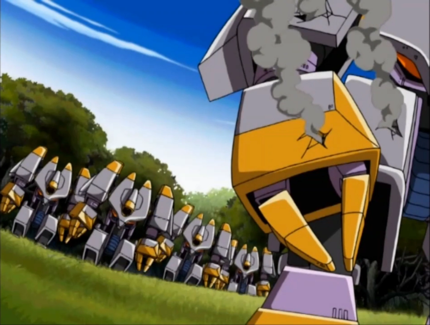 E-35 Funfun about to crush the X Tornado, from "Beating Eggman, Part 2".