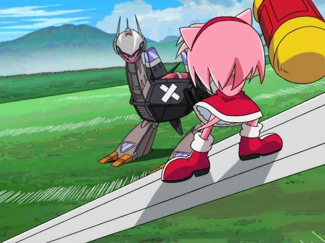 Amy readies an attack against E-88 Lightning Bird, from "How to Catch a Hedgehog".