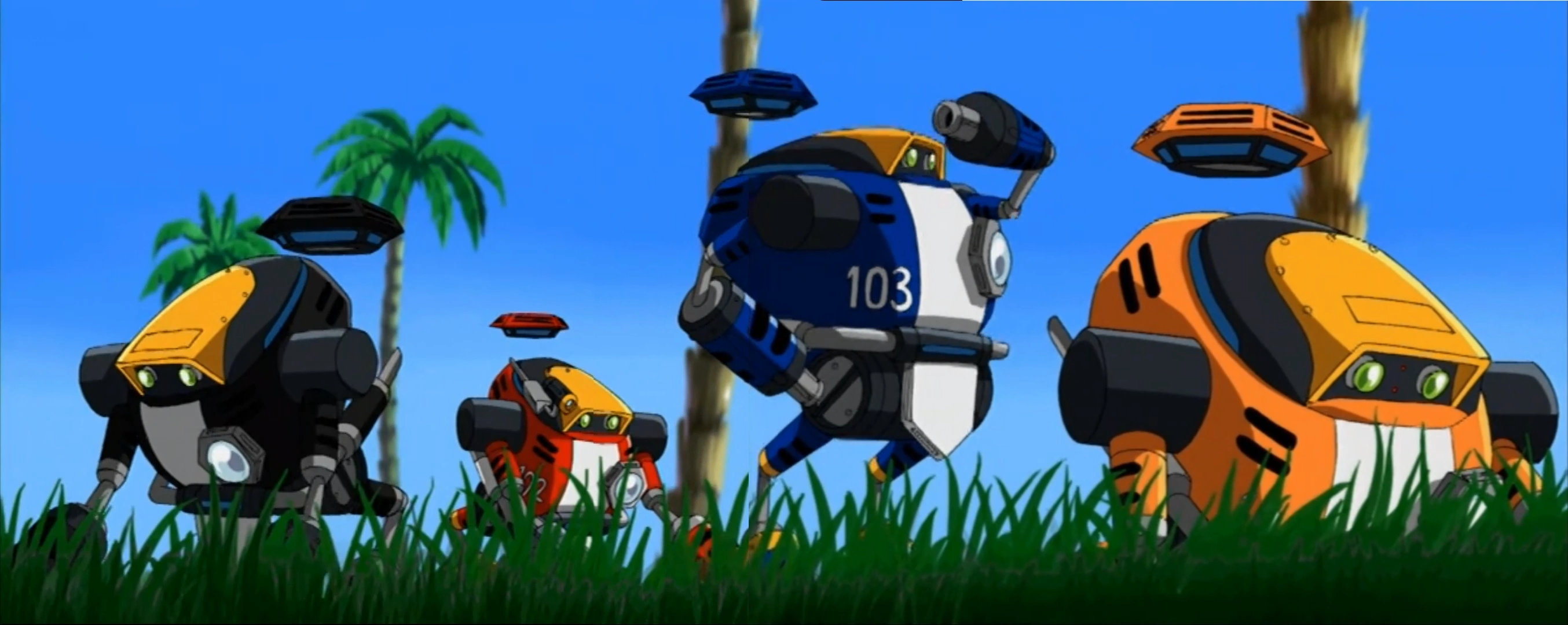 Several E-12 Behemoths advance on Tails and Sonic, from "A Chaotic Day".