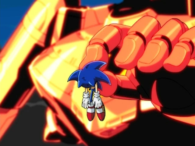 E-65 Gorru-Gaooh lands a surprise attack on Sonic, from "The Dam Scam".