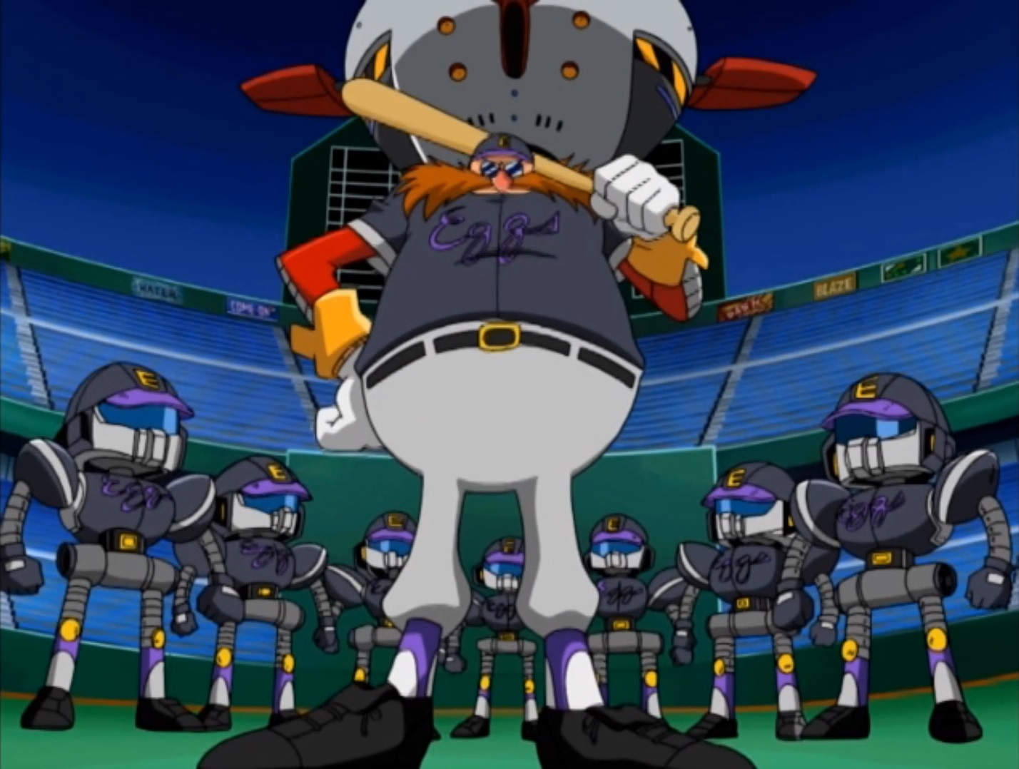 Dr. Eggman and his team of E-21 Ballios at Diamond Stadium, from "Unfair Ball".