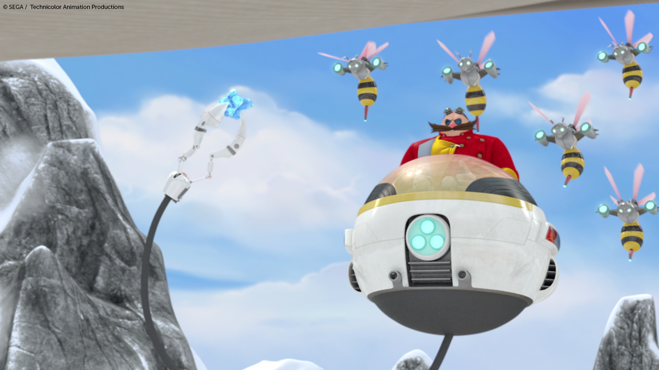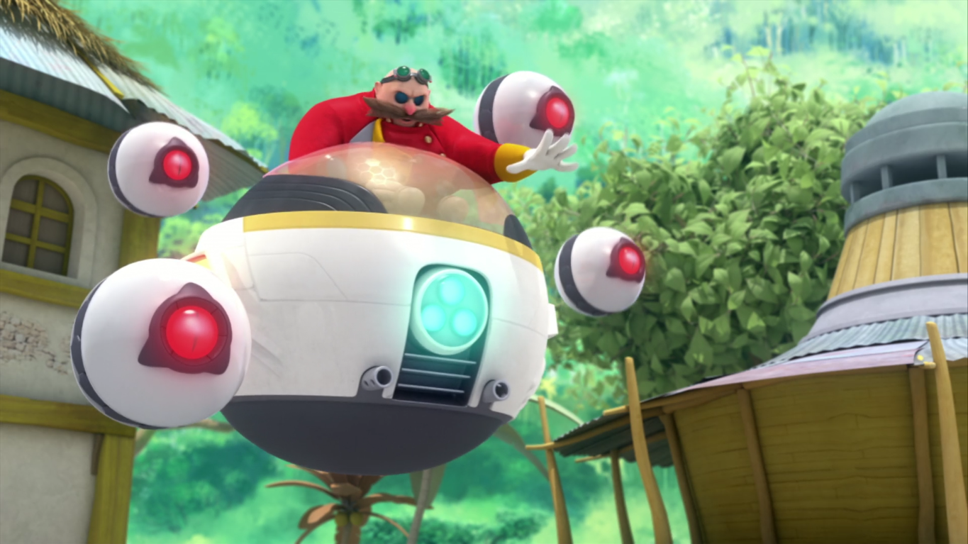 - ↑ Derrien, Jean-Christophe (11 November 2017). "Eggman: The Video Game Part 1". Sonic Boom. Season 2. Episode 103. Boomerang.