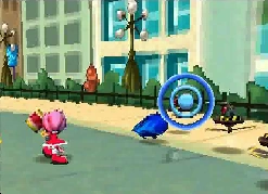 When performing Fastball, Sonic walks up in front of the opponent, while Amy gets up right behind him. Sonic then revs up a Spin Dash and Amy uses her Piko Piko Hammer as a croquet mallet to knock Sonic while he is still curled into a ball into the opponent. When Sonic then rebounds from hitting the opponent, Amy knocks Sonic, who is still curled into a ball, back into the opponent, and repeats the process. After hitting the opponent three times this way, Sonic uncurls, and he and Amy retreat back to their team positions.