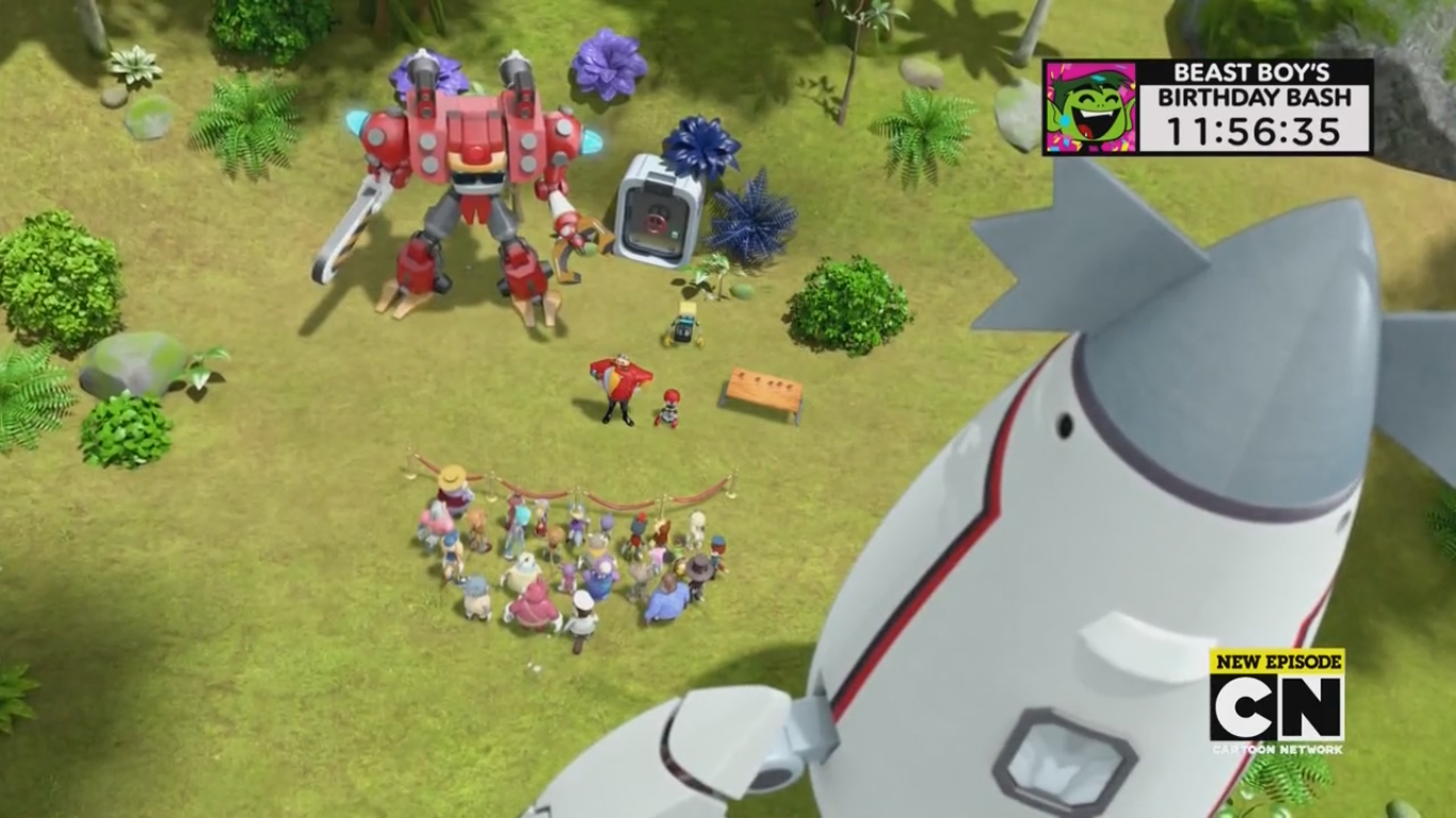 - ↑ Beardmore, Marie (29 July 2017). "Eggman's Anti Gravity Ray". Sonic Boom. Season 2. Episode 90. Boomerang.