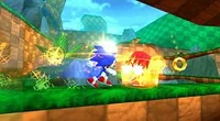 Having just arrived at the island, Sonic finds Eggman Nega, whom he believes to be Dr. Eggman, and asks what he has done to Tails and Amy. Then Knuckles arrives at the scene. He has been searching for the Master Emerald which had been stolen and his search had brought him to (the somehow familiar) Onyx Island. He accuses "Dr. Eggman" of stealing the Master Emerald. The "Doctor" explains to them that he used his special camera to turn Sonic's friends and the Master Emerald into cards. He then says that if Sonic and Knuckles want them back, they would have to catch him first, and the two rivals race after him.