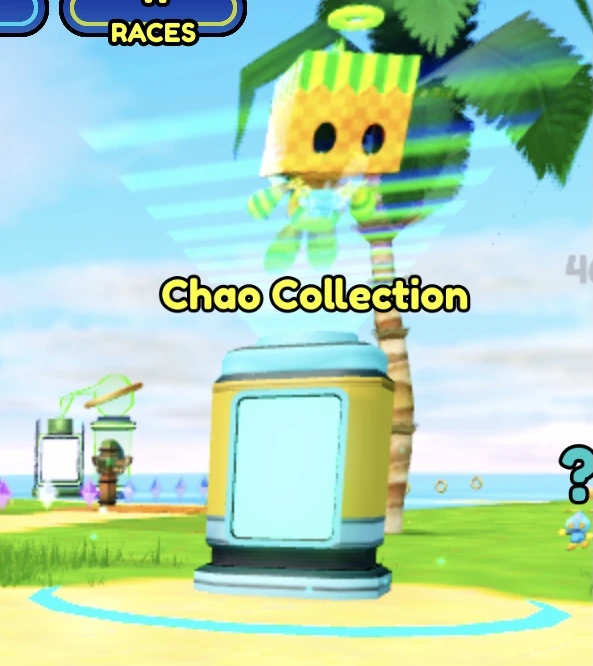 Amy Chao · Apple Chao · Arctic Chao · Armorer Chao · Avocado Chao · Banana Chao · Beach Chao · Bee Chao · Berry Chao · Birthday Chao · Black Chao · Blackberry Chao · Bloxian Chao · Blue Chao · Blueberry Chao · Boxy Chao · Business Chao · Camembert Chao · Candy Corn Chao · Cerulean Chao · Charged Black Chao · Charged Blue Chao · Charged Cyan Chao · Charged Green Chao · Charged Orange Chao · Charged Peach Chao · Charged Pink Chao · Charged Purple Chao · Charged Red Chao · Charged Yellow Chao · Cheese Cake Chao · Cherry Tea Chao · Circuit Chao · Cloud Chao · Clover Chao · Cookies and Cream Chao · Coral Chao · Cotton Candy Chao · Crimson Chao · Cyan Chao · Dark Aquatic Chao · Dark Chao · Dark Chaos Chao · Detective Chao · Dragon Fruit Chao · Easter Egg Chao · Eggman Chao · Electric Chao · Elf Chao · Evergreen Chao · Feijoa Chao · Fire Chao · Fire Ninja Chao · Fisherman Chao · Foxy Chao · Full Moon Chao · Gift Chao · Gingerbread Chao · Gold Chao · Grape Chao · Gratitude Chao · Gray Chao · Green Chao · Halloween Chao · Hazel Chao · Heart Chao · Holographic Chao · Ice Chao · Jet Chao · Jewel Amethyst Chao · Jewel Black Chao · Jewel Citrine Chao · Jewel Cyan Chao · Jewel Diamond Chao · Jewel Gold Chao · Jewel Green Chao · Jewel Jasper Chao · Jewel Larimar Chao · Jewel Peridot Chao · Jewel Pink Chao · Jewel Red Chao · Jewel Sapphire Chao · Jewel Silver Chao · Jewel Sunstone Chao · Jewel Topaz Chao · Karate Chao · Kiwi Chao · Koco Mask Chao · Knuckles Chao · Kunoichi Amy Chao · Lavender Chao · Lemon Lime Chao · Light Chaos Chao · Lilac Chao · Lychee Chao · Marine Chao · Masked Chao · Master Chao · Mega Chao · Midas Chao · Miner Chao · Mint Chao · Mochi Chao · Moon Chao · Moonlight Chao · Mousse Chao · Mummy Chao · Mystic Chao · Navy Chao · Neon Chao · Ninja Chao · Orange Chao · Passion Fruit Chao · Peach Chao · Pilot Chao · Pink Chao · Pink Wisp · Popcorn Chao · Prism Chao · Pumpkin Chao · Purple Chao · Racer Chao · Ranger Chao · Red Wisp · Red Chao · Reindeer Chao · Resistance Chao · Riders Chao · Rouge Chao · Samurai Chao · Sanic · Santa Hat Chao · Scarecrow Chao · Shadow Chao · Sherbet Chao · Skull Chao · Silver Pumpkin Chao · Snowman Chao · Sonic Chao · Spice Latte Chao · Spirit Chao · Sprout Chao · Star Chao · Strawberry Chao · Strawberry Scoop Chao · Sunkissed Chao · Stealth Suit Chao · Swap Chao · Tails Chao · Taxi Chao · Techno Chao · Tiki Chao · Timekeeper Chao · Traveler Chao · Tropical Chao · Tundra Chao · Valentine Chao · Velvet Chao · Violet Chao · White Chao · Water Chao · Water Ninja Chao · Watermelon Chao · White Wisp · Winter Chao · Witch Chao · Yellow Chao · Yellow Green Chao · Yellow Hoodie Chao · Yellow Wisp · Yeti Chao · Yogurt Chao