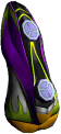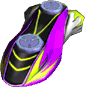 Like most Board type Extreme Gears in Sonic Riders: Zero Gravity , the GC Booster's shape resembles a regular board, but thicker and smoother. It is colored purple, with three exhaust ports on the rear that are arranged in a line, and yellow highlights on the front. It also has a broad black stripe running across its surface, with two circular foot panels on it and yellow highlights decorated on the black surface as well.