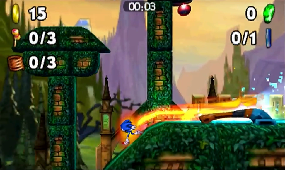 Hazardous obstacles in the adventure levels include stationary rollers with spikes, moving spiked blocks (some of which form traps), and spiked surfaces. Touching such obstacles will damage the player and return the characters to an earlier position. The adventure levels also have collectibles scattered about which unlock extra content if collected, breakable obstacles that give extra Rings, and Challenge Room entrances.