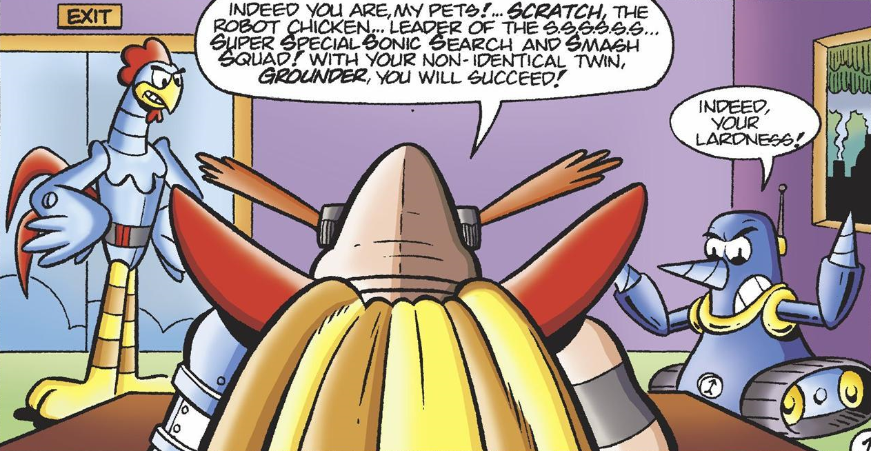 Scratch and Grounder receiving their first orders from Dr. Robotnik, from Sonic the Hedgehog #2.