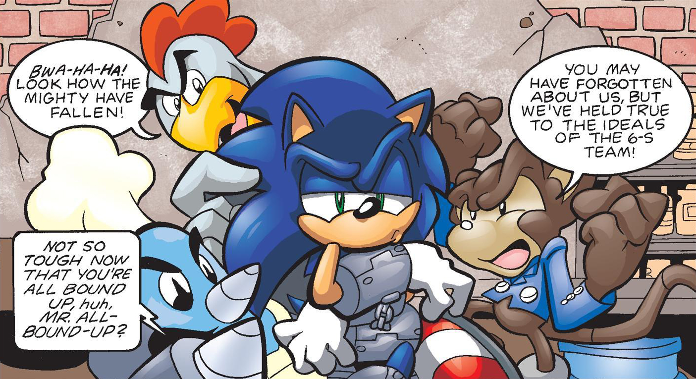 The 6-S mocking Sonic, from Sonic the Hedgehog #188.