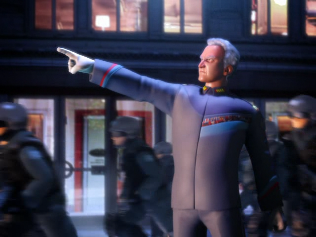 The G.U.N. Commander leading his troops during the Black Arms' invasion, from Shadow the Hedgehog.