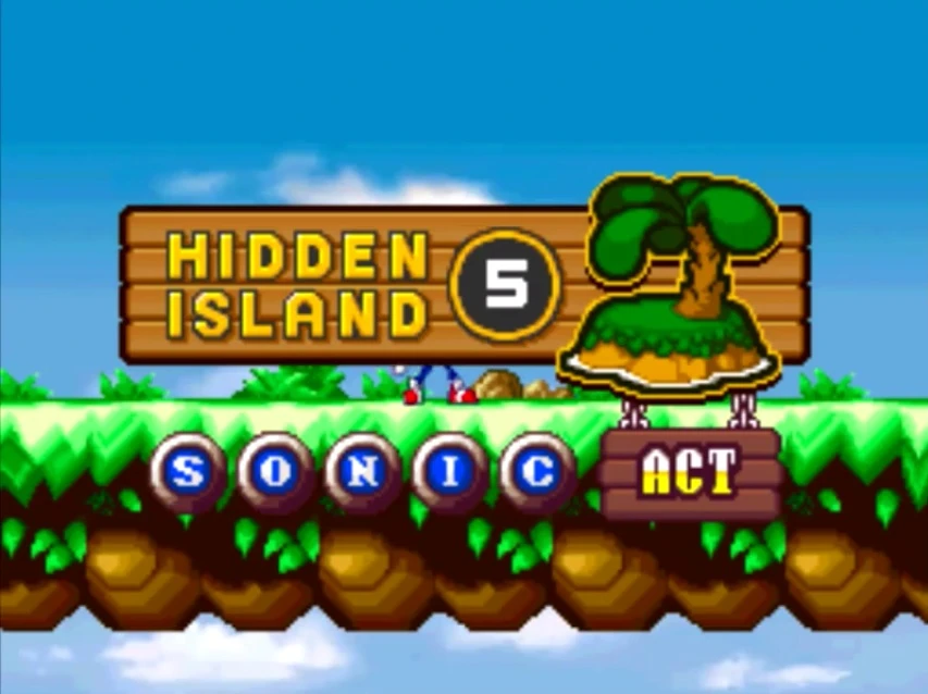 Like most other Hidden Islands, Hidden Island 5 is a short stage which can be finished in less than a minute. The only gimmicks here are the Bungee Rope and Spring, while the gameplay has emphasis on tricky ascend and descend. As hazards, Sky Moons are placed so they can intercept the characters while they are ascending/descending, which is when the characters are most vulnerable.