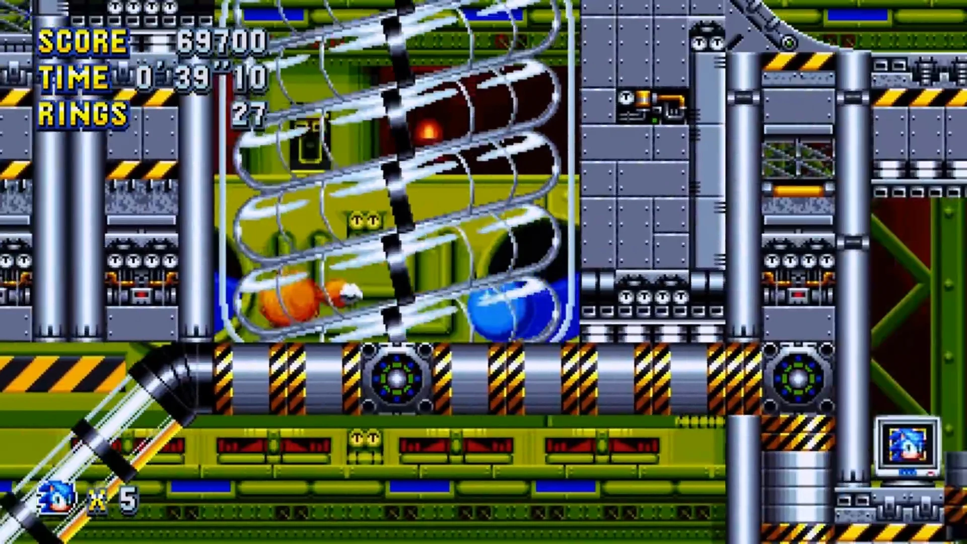In Sonic the Hedgehog CD, the Windows 95version, and the 2011 remaster, the high-speed spiral tubes only appear in Zones 1 and 2 of Quartz Quadrant. Esthetically, their appearance varies depending on the time frame: in the present, they are covered in a transparent material; in the bad future, they are tinted olive green and have a few dents on them; in the good future, they are tinted blue; and in the past, they are completely exposed with no cover.