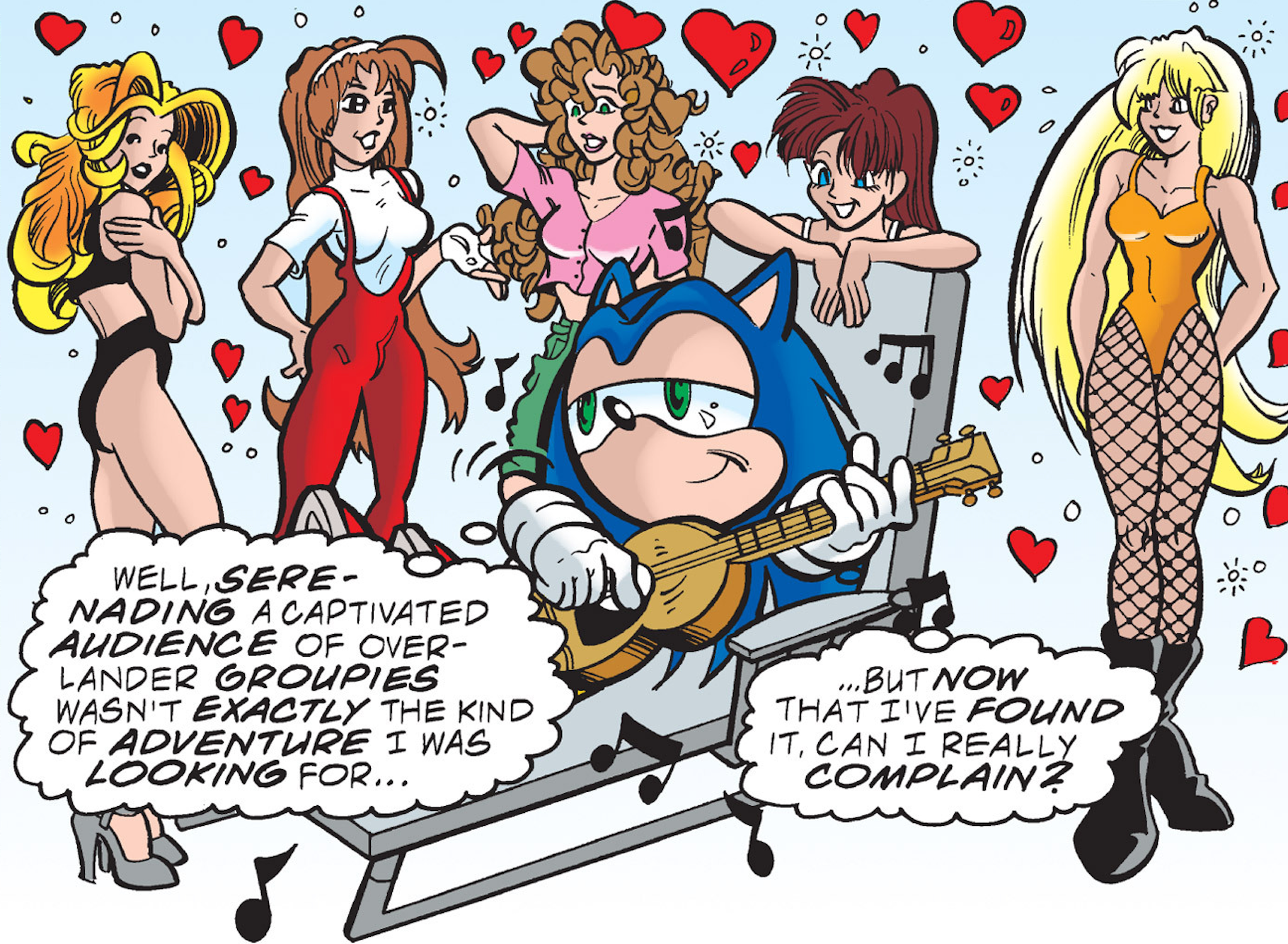 Sonic being convinced to sign autographs, from Sonic the Hedgehog #86.