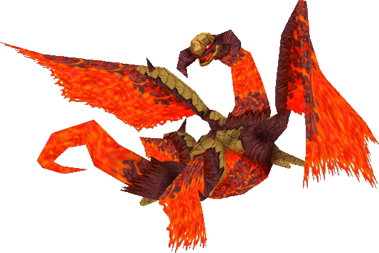 The Ifrit is a massive creature, many times larger than individuals like Sonic. He has a vaguely avian shape, possessing a long neck, two large wings and two smaller wings, and a tail. Most of his skin is a reddish brown color, while the rest is coated in either yellow, rock-like armor or lava that perpetually emits flames. His head has two curled horns on either side, and his eyes glow bright red.