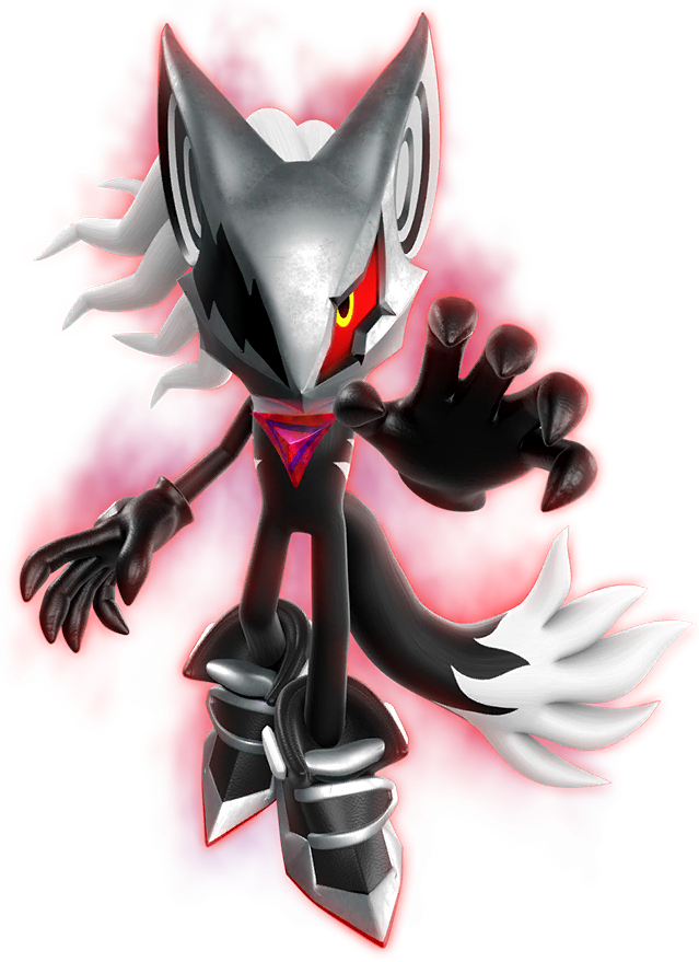 Six months after Sonic's defeat, Infinite was present at the Spaceport, fighting Espio's forces in the orbital tunnel while the Avatar hijacked a shuttle to the Death Egg.[25] Sometime later, Infinite traveled to a facility in Mystic Jungle to dispose of leftover Phantom Ruby prototypes. There, Infinite encountered Silver the Hedgehog, whom he decided to defeat to further the Resistance's despair. Although Infinite overpowered Silver, he dropped a Phantom Ruby prototype during the battle without noticing and the escaped Sonic intervened before he could finish him off. Intrigued by Sonic's return, Infinite attempted to intimidate him, only to be brushed off, as Sonic was more interested in the secret to his powers. Infinite refused to entertain him and instead attacked. Although Sonic put up a better fight than before, Infinite still beat him, seeing him as no threat and letting him live.