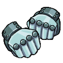 All excluding robots | Infused with power, these gloves hit hard but can be tricky to handle. Greatly increases damage but reduces attack. | Power +5 Attack -2 |
