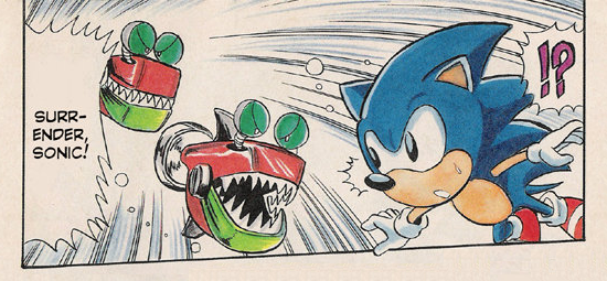 In the Sonic the Hedgehog comic series and its spin-offs published by Archie Comics, the Jawses were one of the Classic Badniks created by Dr. Ivo Robotnik. In the comics' early run, the Jawses served as Robotnik's foremost subordinate in his underwater operations. However, they were eventually rendered obsolete by more advanced robots and got decommissioned.