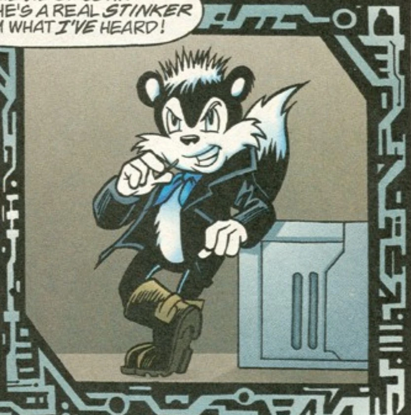 He briefly led the Anti-Freedom Fighters. However, after repeated defeats, the others dumped him and Anti-Sally Acorn became the new leader. While he had almost no role, it can be assumed that he possesses all of his Prime version's negative qualities with none of the positive.[1]