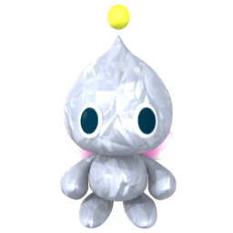 Jewel Diamond Chao have white, jewel-looking, pudding-like bodies with round, waterdrop-like heads. They also have large eyes, no noses or mouths, round torsos that are smaller than their heads, smooth feet with no legs, and arms with no visible hands. In addition, neither their arms nor feet have digits. They also have a floating dot above their heads, short and round tails, and a small set of wings on their backs.
